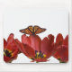 Drei rote Tulpen und ein Monarchen-Schmetterling g Mousepad