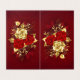 Die Komposition von zwei kunstvoll bemalten rote Rosen und einer goldenen Rose, mit Gold, Juwel Blätter auf texturierten Hintergrund verziert.