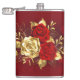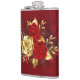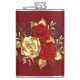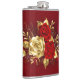 Die Komposition von zwei kunstvoll bemalten rote Rosen und einer goldenen Rose, mit Gold, Juwel Blätter auf texturierten Hintergrund verziert.
