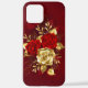Die Komposition von zwei kunstvoll bemalten rote Rosen und einer goldenen Rose, mit Gold, Juwel Blätter auf texturierten Hintergrund verziert.