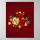 Die Komposition von zwei kunstvoll bemalten rote Rosen und einer goldenen Rose, mit Gold, Juwel Blätter auf texturierten Hintergrund verziert.