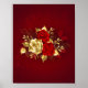 Die Komposition von zwei kunstvoll bemalten rote Rosen und einer goldenen Rose, mit Gold, Juwel Blätter auf texturierten Hintergrund verziert.