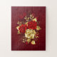 Die Komposition von zwei kunstvoll bemalten rote Rosen und einer goldenen Rose, mit Gold, Juwel Blätter auf texturierten Hintergrund verziert.
