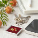 Die Komposition von zwei kunstvoll bemalten rote Rosen und einer goldenen Rose, mit Gold, Juwel Blätter auf texturierten Hintergrund verziert.