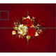 Die Komposition von zwei kunstvoll bemalten rote Rosen und einer goldenen Rose, mit Gold, Juwel Blätter auf texturierten Hintergrund verziert.