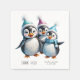 Drei bezaubernde Pinguine stehen in festlichen Winterhüten und farbenfrohen Schals. Ihre großen, runden Augen strahlen vor Freude, während ihre flauschigen weißen Bäuche mit dem hellblauen Weihnachtsbaum kontrastieren, der mit funkelnden Lichtern geschmückt ist. Die Pinguine lächeln glücklich und scheinen bereit, den Zauber der Feriensaison zu feiern. Rund um sie tanzen zarte Schneeflocken durch die Luft, während funkelnde Sterne am Himmel leuchten und eine warme, festliche Atmosphäre schaffen. Dieses Design vereint den Geist der Weihnachten - voller Freude, Freundschaft und Winterwundern!