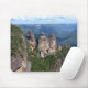 Drei Schwestern, Blue Mountains, NSW, Australien. Vollständig anpassbar. Die Drei Schwestern sind eine Felsformation in den Blauen Bergen von New South Wales, Australien. Sie sind nah zur Stadt Katoomba und gehören zu den bekanntesten Sehenswürdigkeiten der Blauen Berge, die über dem Jamison Valley ragen. Sie heißen Meehni (922 m), Wimlah (918 m) und Gunnedoo (906 m). Die Schwestern wurden durch Erosion geformt. Der weiche Sandstein des Blauen Gebirges wird mit der Zeit durch Wind, Regen und Flüsse leicht erodiert, und die Felsen rund um das Jamison Valley werden langsam aufgebrochen. Formationen wie die Drei Schwestern entstehen, wenn Wasser in kleine Risse im Felsen sickert und sie im Laufe der Zeit allmählich zu großen Abenteuern ausweitet. Letztlich werden die Schwestern komplett ausgehöhlt.