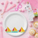 Ein Trio der hellen Segelboote hergestellt von einigen Formen im goldenen Gelb, im hellen Rot, im Grün und im Blau. Spaß und buntes. Bringen Schürze, PapierTeller und Servietten mit dem gleichen Namen zusammen. Es gibt auch eine Einladung mit dem Namen "des Endes des Sommer-Party".