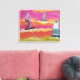 Farbenfrohe Segelboote, die auf dem Meer segeln, mit einem schönen rosa Himmel oben. Erstellt als Mixed Media Art.