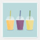 Drei Smoothies in Tassen aussehen sehr bunt und bereit zu trinken. Dieses Design sieht auf diesen Aufklebern wirklich effektiv aus