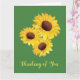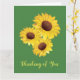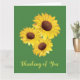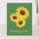 Drei Sonnenblumen Design Blank Grußkarte mit anpassbarer Hintergrundfarbe und Fronttext. Schreib deine eigene Nachricht hinein.
