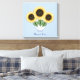 Drei Sonnenblumen mit Herz-Blätter in einer Vase auf Himmelblau Canvas Print. Ein Geschenk gemacht mit Liebe und Freundlichkeit für alle!