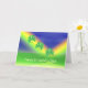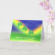 Karte mit meinem Design von drei vierblättrigen Kleeblattern, die helle Regenbogen abgleiten, mit dem Text "Happy St. Patrick's Day!"