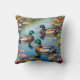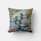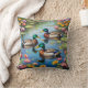 Illustration von drei Stockenten, die auf einem Kissen zum Schwimmen auf dem Seeufer schwimmen.