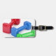 Drei Dumbbells mit verschiedenen Größen und Farben auf weißem Hintergrund