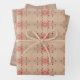 Dekoratives, blumengeschmücktes und gemustertes Verpackungspapier, drei verschiedene Drucke mit Rot, Korallen und Graubraun und eine Touch Grün, Geschenkpackung geeignet für jeden besondere Anlass.