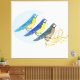 Drei Vögel verschiedener Farben mit einem Baumzweig in einem einfachen Boho-Stil.