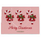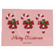 Desteis originelle Illustration von drei rot-weiß gestreiften Weihnachtskandinken-Leckereien mit einem roten Bogen und einer Weihnachtsheiligen / Gemeinen heiligen Pflanze verziert. Die Hintergrundfarbe ist rosa. Es gibt auch zwei personalisierbare Textbereiche.