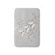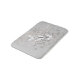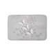 Badematte mit meinem hübschen Vektordesign aus drei weißen und schwarzen Schmetterlingen, die über luftige, graue und weiße Blasen fliegen, mit Touchs von Pfirsich, auf grauem Hintergrund.