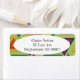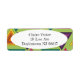 Diese Rücksendeadressen-Aufkleber haben ein Design der 1970er Jahre auf konzentrische Dreiecke in aquamarinen, orangen, gelben, lila und rosa Farbtönen auf einem grünen Feld.