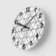 Diese ganze Uhr hat ein modernes Design von weißen Dreiecken, die horizontal mit schwarzen Linien ausgeführt werden.
