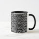 Ein geometrisches Terrazzo-Muster mit attraktiven Details in Schwarz und Weiß. Die weißen Bereiche in diesem Design können jedoch an jede beliebige Farbe angepasst werden. Das Muster wurde aus einem Detail eines größeren handgezeichneten Designs abgeleitet, so hat eine schöne Mischung aus perfekter Computergeometrie mit etwas eigenartigeren handgezeichneten Details.