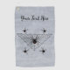 Dieses Golfhandtuch ist weiß mit einem bemalten Aussehen mit einem schwarzen dreieckigen Spinnennetz mit schwarzen Witwenspinnen, die die roten Stundenglasmarkierungen aufweisen. Passen Sie Ihren Text mit der Vorlage an.