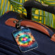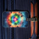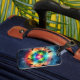Ein lebendiges und psychedelisches Kunstwerk mit einem farbenfrohen Dreieck, umgeben von einem wirbelnden kosmischen Hintergrund und einer Herde von Krähen. Das Bild ruft ein Gefühl von Mysterium, Spiritualität und kosmischer Energie hervor.
