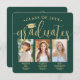 Es ist eine Dreifach-Abschlussfeier! Verkünden Sie die Errungenschaft von drei Absolventen und laden Sie Familie und Freunde zu feiern mit stilvollen gemeinsamen Abschlussfeier Platz Foto Einladungen. Alle Bilder und Formulierungen sind einfach zu personalisieren und die Farben können mit dem Zazzle Design Tool angepasst werden. (IMAGE PLACEMENT TIP: Eine einfache Möglichkeit, ein Foto genau so zu positionieren, wie Sie es gewollt haben, besteht darin, es einzuschneiden, bevor Sie es auf die Zazzle-Website hochladen.) Diese Vorlage ist eine kombinierte Anzeigenkarte auf der Vorderseite mit der grad-Party Einladung auf der Rückseite. Das moderne Green und Gold Design besticht durch handgeschriebene Schriftzeichen-Kalligraphie mit einer Mörtel-Kappe, elegante klassische Typografie und 3 Fotos Ihrer Wahl, wie Seniorenbilder oder Bilder aus der Antrittsfeier. Bitte beachten Sie, dass Gold farblich gedruckt ist, nicht metallische Folie. Diese Einladungskarte ist eine stilvolle Möglichkeit, einen besonderen Tag für alle drei Klassen anzukündigen: Geschwister, beste Freunde, Cousin, Triplets, Teamkollegen, Brüder und Schwestern, usw. Herzlichen Glückwunsch an die Absolventen!