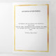 Ein elegantes Dreifachprogramm. Weißer Hintergrund, goldenes Imitat, rosa und weiße Blumen und Platz für ein Foto. Personalisieren und hinzufügen von Namen, Daten und Text.