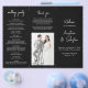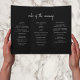 Dieser Flyer mit dem dreifach schwarz-weiß-schicken Drehbuch ist eine stilvolle und funktionelle Art, Ihre Gäste durch Ihre Zeremonie zu führen. Dieses Programm mit eleganter handgeschriebener Kalligraphie und einem sauberen, zeitgenössischen dreiseitigen Layout bietet viel Platz für Ihre Reihenfolge von Veranstaltungen, Hochzeitsfeiern, Lesungen und persönlichen Noten. Die klassische Schwarz-Weiß-Farbpalette verleiht dem Hotel zeitlosen Charme und eignet sich ideal für formelle, minimalistische oder romantische Hochzeiten. Ein raffinierter Sake, der Ihre Hochzeitssuite wunderbar ergänzt.
