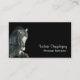 Eine Schablone für reitenlehrer oder Trainer mit einer Fotografie eines Dapple grauen hoch-Treten Pferds, wenn ein Vorderbein angehoben ist. Das Pferd hält es ist Haupt vertikal mit einem gewölbten Hals, gegen einen schwarzen Hintergrund, mit Ihrem Namen, auf der Front im Weiß zu ändern. Die Rückseite ist schlichtes Weiß mit schwarzem Text für andere Details. Horizontale Version