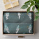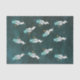 Diese Papiertaschentücher haben weiß gekleidete Geister in blauen Hüten mit extravaganten schwarzen Kanistern mit goldenem Schnitt und Skullen oben in einem dunkelblauen Nachthimmel mit winzigen weißen Sternen.