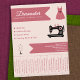 Ein Flyer mit Abreißleisten und Abbildung einer Nähmaschine, eines Nähmannequins und eines Kleides mit nähenden Buttonen auf hellrosa Hintergrund. Perfekt für Aktivitäten wie Schneider, Umbauten, Reparaturen, Modedesigner, Schneider, Handnähen, etc.