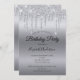 Dripping Glitzer Silver personalisierte Geburtstagseinladung. Personalisieren Sie diese Einladung mit allen Details für Ihr Party. Sie können das Geburtstagsjahr der "Geburtstagsfeier"-Zeile der Einladung hinzufügen.