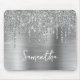 Passen Sie das moderne handgeschriebene Skript an, um Ihr eigenes Mousepad zu erstellen. Fügen Sie ein Monogramm Initial hinzu, um eine erste Kombination aus Vornamen zu erstellen. Girly Imitate silberne Glitzer Tropfen und gebürstete Metallfolien digitale Kunst, die wie ein Foto auf Ihrem Design drucken wird.