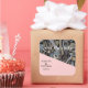 Ein Save the Date gestaltbares Design, das mit den Namen von Braut und Baum angepasst werden kann. Der Hintergrund ist eine Collage aus einem rosa Banner und einem Foto aus Strandsteinen und Treibholz.