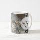 Diese wunderschöne Tasse bietet ein naturgetreues Foto und extravagante Initialen für eine sehr personalisierte Morgen-Tee oder Kaffee-Tasse. Das treibende Holzmuster, das auf diesem Foto aufgenommen wurde, zeichnet sich durch die Marmorfarben Schwarz, Grau und Braun aus, die ein abstraktes Muster mit feinem Sand bilden. Auf beiden Seiten dieser Tasse erscheint ein hellgrauer Kreis, der einen soliden Hintergrund für Ihre extravaganten Initialen ermöglicht. Personalisieren Sie Ihr Monogramm schnell und einfach.