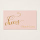 In einem festlichen, aufwändigen Script-Schriftart erscheinen auf der Vorderseite dieses stilvollen Getränkekarten die Worte "lass uns dir einen Drink zu kaufen". Der schöne Text wurde mit einem Imitat Goldfolieneffekt verziert. "Good for One Adult Beverage" wurde in einem ergänzenden Serif-Schriftart unten in das bearbeitbare Textfeld eingefügt. Verwenden Sie alle anderen Wörter, die Sie möchten, wenn Sie gewollt haben, die Kopie zu ändern. Auf der anderen Seite liest sich das schöne grafische Texteüberlagern als "Beifall", und es wurde ein Vorlagenplatzhalter für Ihre Namen hinzugefügt. Die bearbeitbare Hintergrundfarbe ist ein Schwarz-Rosa und Sie können sie ändern, wenn Sie möchten, oder sogar Ihren eigenen Hintergrund Bild hinzufügen. Alle Ebenen sind entriegelt, sodass Sie jeden beliebigen Teil dieser Karte, den Sie mögen, verkleinern oder neu positionieren können, wenn Sie gewollt haben, dieses Design zu verändern. Bitte zögern Sie nicht, uns zu kontaktieren, wenn Sie Fragen haben oder Hilfe bei der Anpassung benötigen. 56 //