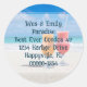 Runde Rücksendeadresse Umschlag Aufkleber mit Getränken auf dem Strand Bild. Jeder, der einen lässigen Lebensstil am Meer lebt, wird diesen Aufkleber Liebe geben. An einem sonnigen Strand mit tropisch blauem Wasser in der Ferne sitzen frostige Cocktails. Dies ist das Hintergrundbild für Ihren Namen und Ihre Adresse, das in grobem, handgeschriebenem Stil gedruckt wird. Andere Aufkleberformen können je nach Text funktionieren. Lass keine Formulierung, die an den Rand kommt.