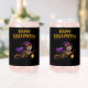 Sip your favourite spooky bruise in style with this magical witch kitten can shaped glass featuring a cheerful tabby kitten flying through the night sky on her broomstick complete with a purple witches hat cape and a glowing lantern. This high detail illustration is set against a sleek black wrap with bold happy Halloween lettering making it a perfect addition to your October barware collection or a delightful gift for cat lovers.