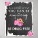 Anti-Drogen-Sensibilitätspaket. Die "Nein zu Drogen sagen"-Nachricht sitzt auf einem gebeutelten Chalboard-Hintergrund und lautet: "In einer Welt, in der man alles sein kann. Sei drogenfrei." Das typografische Design umfasst elegante handgeschriebene Schriften und feinen Druck. Das Plakat ist mit hübschen, rosa und orangefarbenen Blume in Aquarelltönen dekoriert.