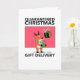 Funny Design mit einem Rentier, der versucht, ein Weihnachtsgeschenk mit einer Drohne zu liefern. Gutartige Geschenkidee für Weihnachten in Quarantäne 2020