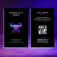 Einführung einer futuristischen Visitenkarte für einen Drohnenpiloten oder ein Unternehmen, die Professionalität und Klarheit in allen Details vermitteln soll. Die Vorderseite ist mit einem auffallenden Röntgenbild eines Set aus der Drohne vor einem schwarzen Hintergrund versehen, was ein auffälliges visuelle schafft, das sofort Aufmerksamkeit erregt. An der Vorderseite werden der Firmenname und das Slogan hervorgehoben angezeigt. Auf der Rückseite können Sie Ihren Namen und Titel sowie wichtige Kontaktinformationen hinzufügen, um sicherzustellen, dass potenzielle Kunden Sie leicht erreichen können. Ein komfortabler QR-Code wird hinzugefügt, um direkt auf Ihr Portfolio und Ihre Serviceangebote zu verlinken, was es Kunden erleichtert, Ihre Fähigkeiten zu erforschen. Diese Karte ist nicht nur ein Kontaktwerkzeug, sondern spiegelt Ihre Marke wider.