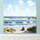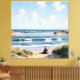 Deze rustige scène toont een vrouw die alleen op het strand zit en naar de zee kijkt. De golven rollen zachtjes tegen de kust onder een blauwe lucht met donzige wolken. De duinen omkaderen de horizon, een intieme en serene sfeer van dit mooie strandtafereel. Ze droomt over de toekomst en overdenkt haar leven, misschien genietend van een moment van rust en ontsnapping uit de dagelijkse drukte. Haar gedachten dwalen af naar verre oorden en nieuwe avonturen, terwijl ze de kalmerende invloed van de zee op zich laat inwerken.