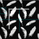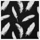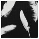 Druck der weißen Feder auf einem schwarzen Hintergrund - Medien-Grafikdesign der weißen Federn, schwimmend auf ein kontrastierendes Hintergrundgewebe