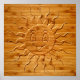 Druck eines lächelnden Sonnengesichts aus Holz Poster