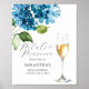 Feiern Sie Ihre Bridal-Shower-Party im Stil mit unserem blauen Willkommensschild "Petals and Prosecco", das elegant gestaltet ist, um Ihre Veranstaltung mit blauen Aquarell-Hortensien und zarten botanischen Details zu bereichern. Dieses für Hortensien-Bridal-Shower-Themen erstellte Stück verbindet moderne Typografie mit zeitloser floraler Kunst - eine perfekte Ergänzung zur Dekoration Ihrer Veranstaltung, die eine elegante und romantische Feier bietet.