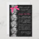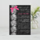 Diese elegante und hoch entwickelte Braut- oder Polterabendeinladung hat einen Ton auf Tonschwarzem und grauem Blumenmusterhintergrund mit einem silbriges weißes Imitat Texturspitzeentwurf auf ihr und einem heißen pinkfarbenen Rosa, das AUF Bogen GEDRUCKT wird, der für eine Wäschedusche perfekt sein würde. Der Text und das Papier ist ganz kundengerecht. Es wird hier auf grundlegendem Papier gezeigt. Ich würde NICHT metallisches Gold benutzen, oder silbernes Papier, da sie beide streng/verdunkeln, die Farbe der Karte ändern. *** MERKEN BITTE dass, wenn Sie den Schriftart oder die Größe des Schriftartes ändern, es kann ändern, wie Ihre Einladung druckt. Es druckt die Weise, die Sie sie auf Ihrem Monitor sehen, also, wenn Sie Ausrichtungsfragen haben, oder die Bearbeitenprobleme, in Verbindung tritt mit mir bitte für Hilfe, bevor Sie bestellen. Ich sehe nicht Ihre Einladung, sobald Sie sie bestellen, und Zazzle redigiert nichts (Typos, Ausrichtung, etc.). Wenn Sie Unterstützung fordern oder irgendwelche anderen zusammenpassenden Einzelteile möchten, Ihren Antrag bitte emailen niteowlstudio@gmail.com.