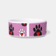 Ihr geliebtes Haustier wird mit dieser farbenfrohen rosa Schüssel mit schwarz-weißen Pfoten mit Herzen im Stil essen! Personalisieren Sie es, indem Sie den Namen Ihres Haustieres hinzufügen!